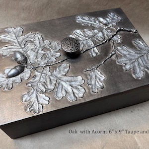 Enhance your wall by bringing the trees indoors. Leaves, branches and acorns picked from a tree were used to create this unique piece of wall art. Wired on the back and ready to hang with a standard picture hanger. It is available in 16 standard colors.