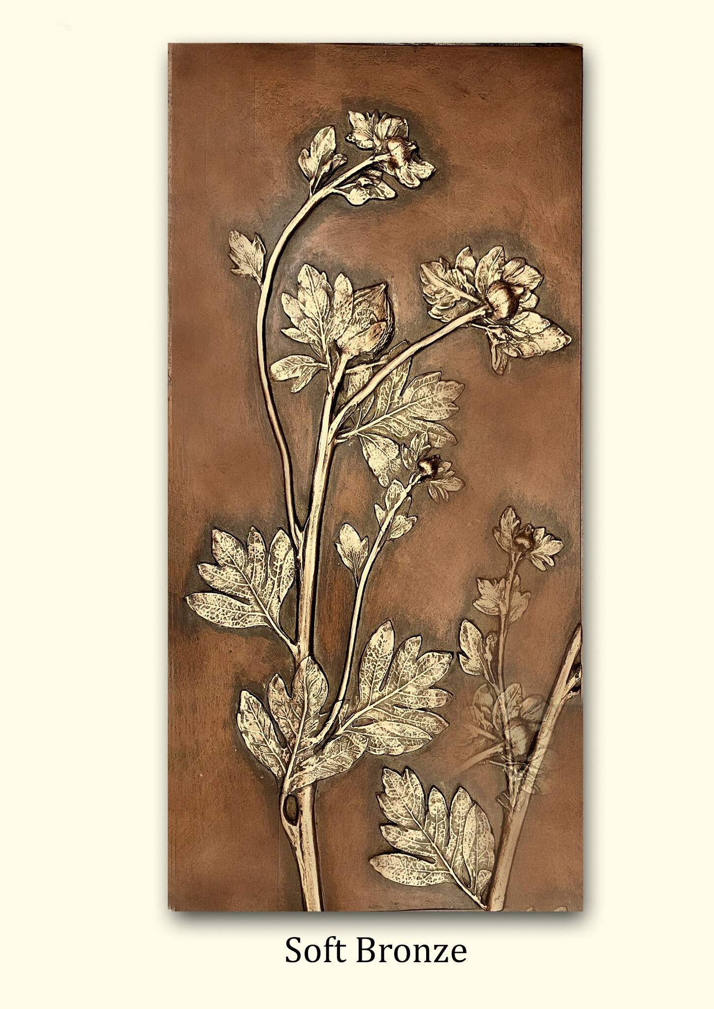 At BlindSpot we enjoy finding unusual things to use for our decorative wall panels. The buds of the California native Matilija Poppy are complex and a bit hairy. Being a California native myself, I admire the tall plant with the huge white flowers. Some call it a Fried Egg, but Matilija has 3 dotted letters and I love that. The size is 8” x 16" and is available in sixteen unique metallic patinas.