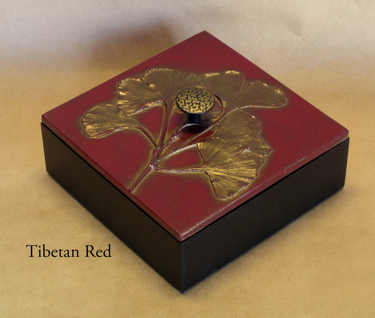 Gingko Leaf Decorative bamboo Box with handmade lid.