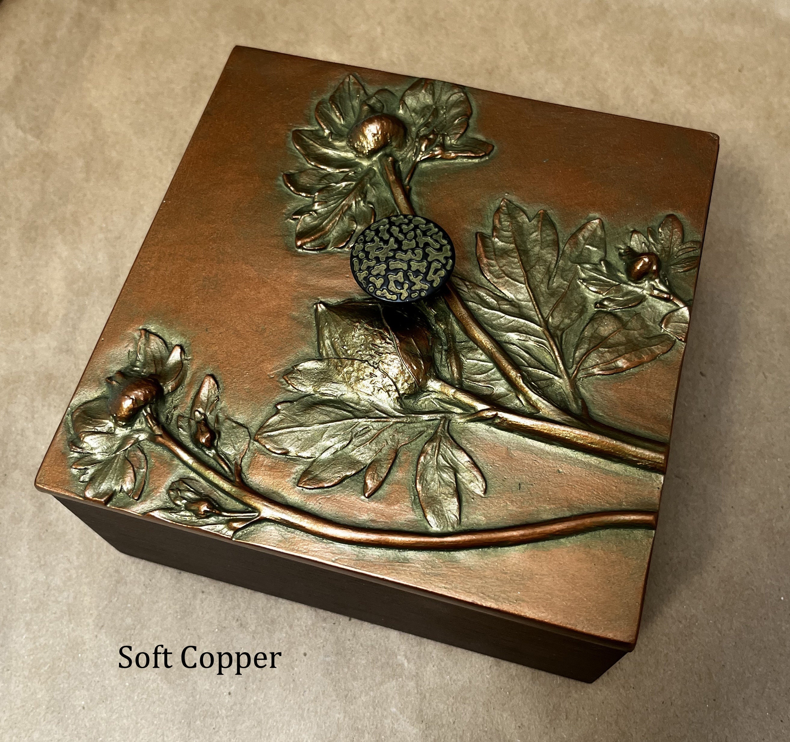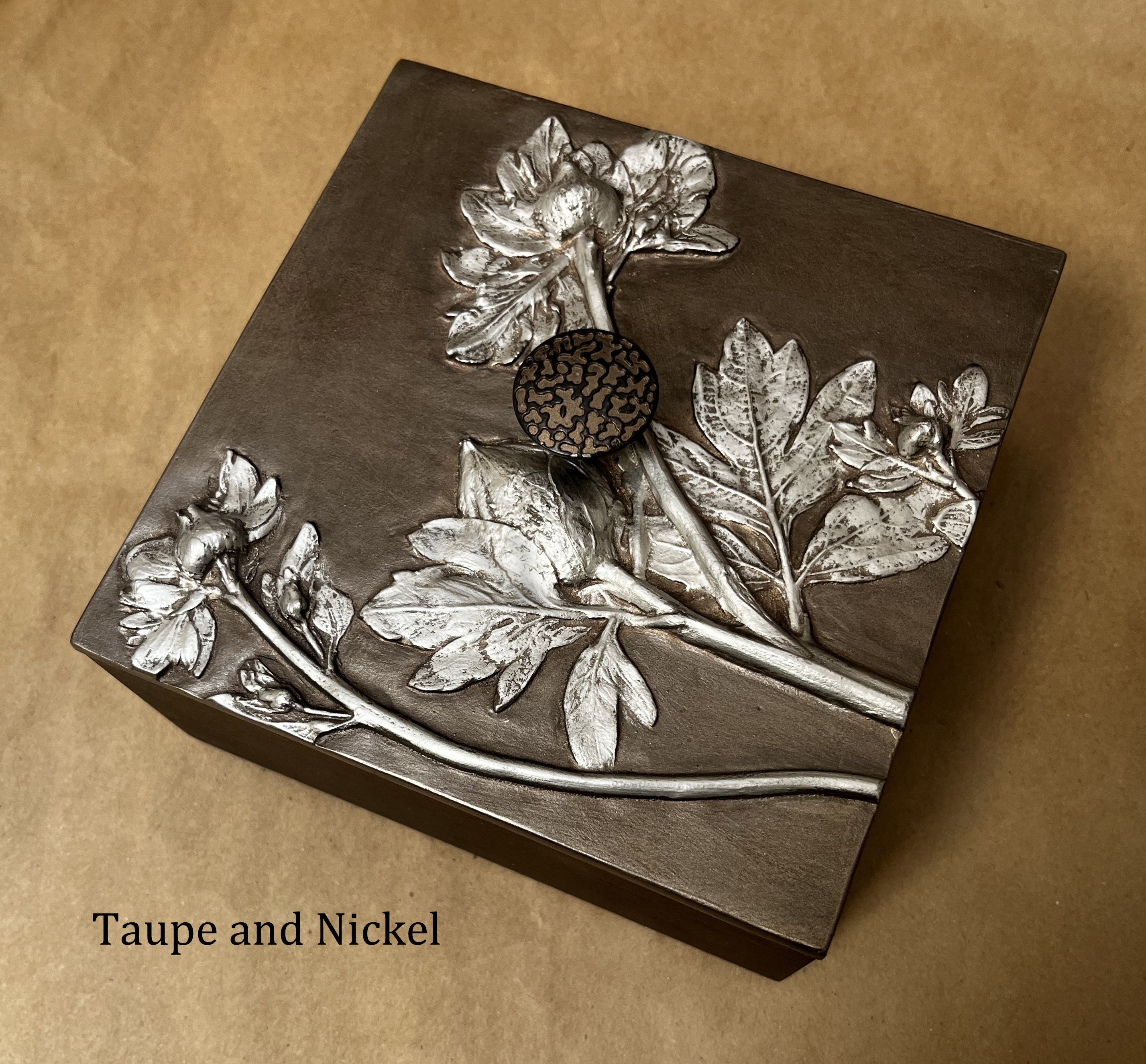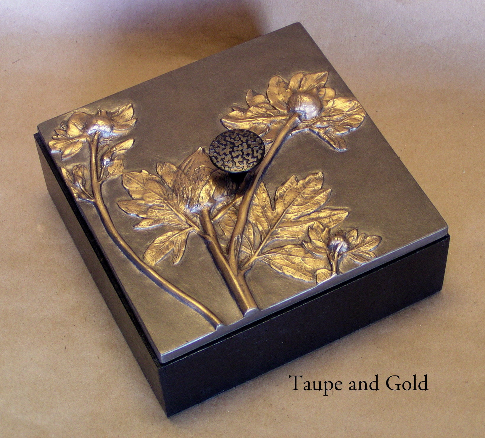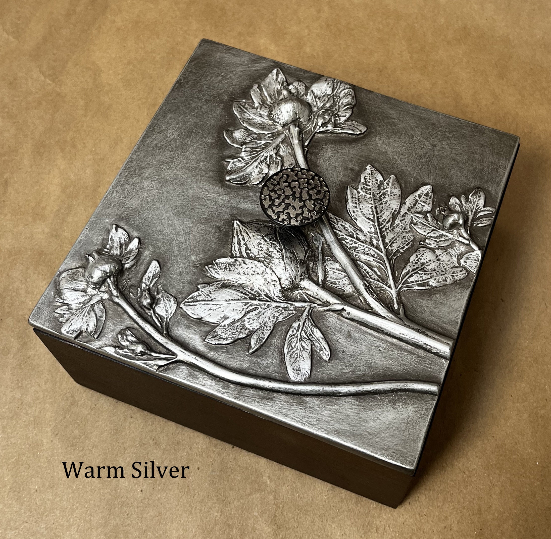 At BlindSpot we enjoy finding unusual things to use for our small decorative storage boxes. The buds of the California native Matilija Poppy are complex and a bit hairy. Being a California native myself, I admire the tall plant with the huge white flowers. Some call it a Fried Egg, but Matilija has 3 dotted letters and I love that. The size is 6" x 6" and about 3" tall including the knob and has interior dimensions of 5 3/8"x 5 3/8" x 2". It is available in sixteen unique metallic patinas.