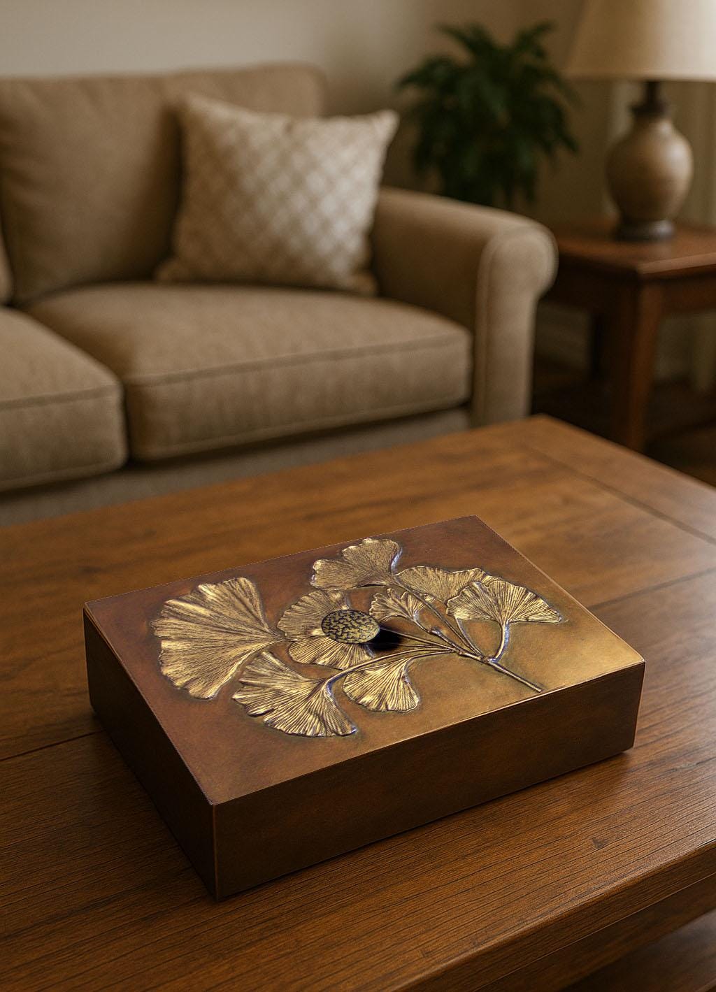 Gingko Leaf lid on Decorative bamboo Box 6" x 9"