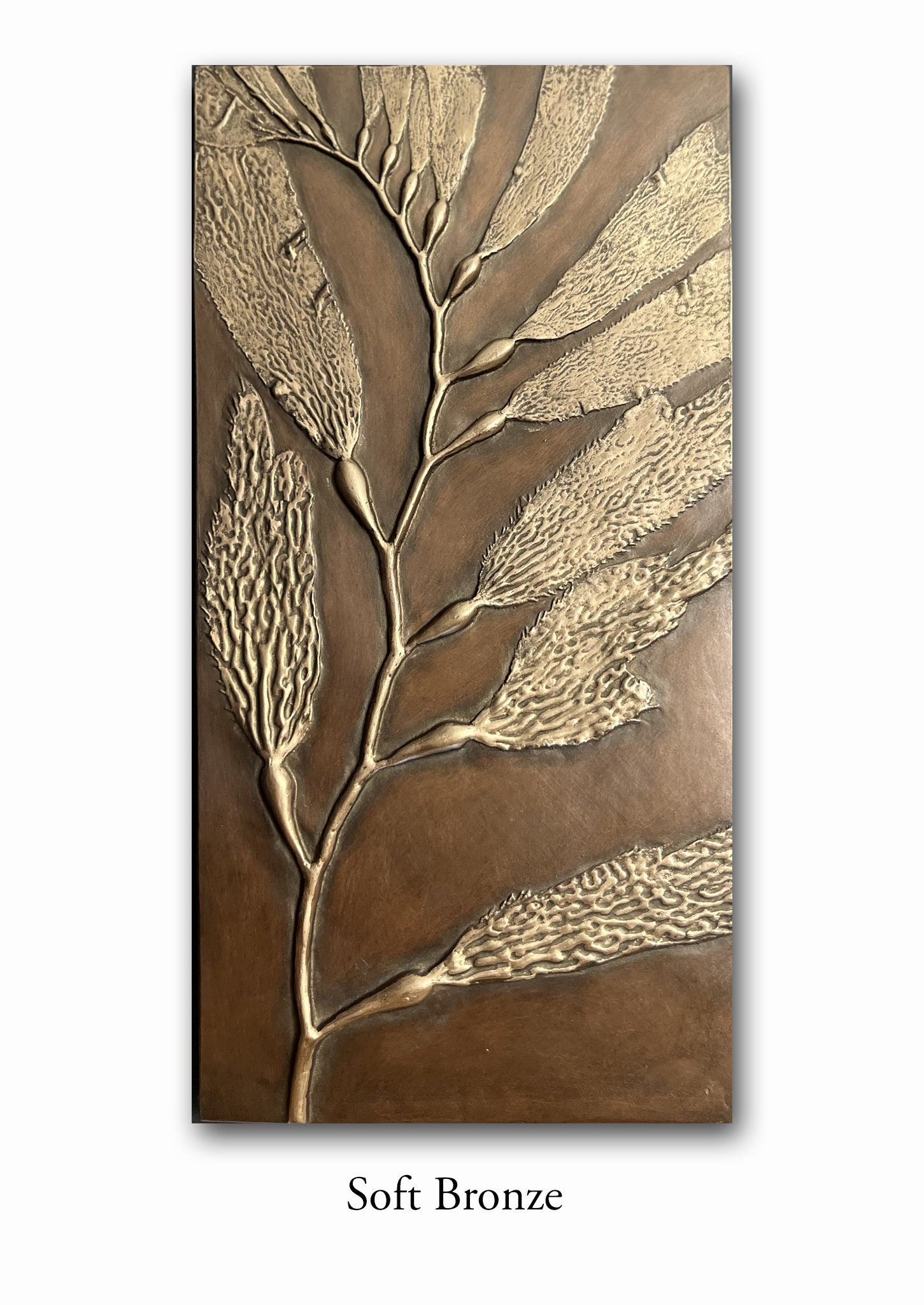 The fronds of the Giant Kelp have always been my favorite texture. Somehow those small rivulets bring to mind the entire ocean. Pair this with our other Seaweed 6" x 12" Panel in one of sixteen unique patinas for a taste of the beach.