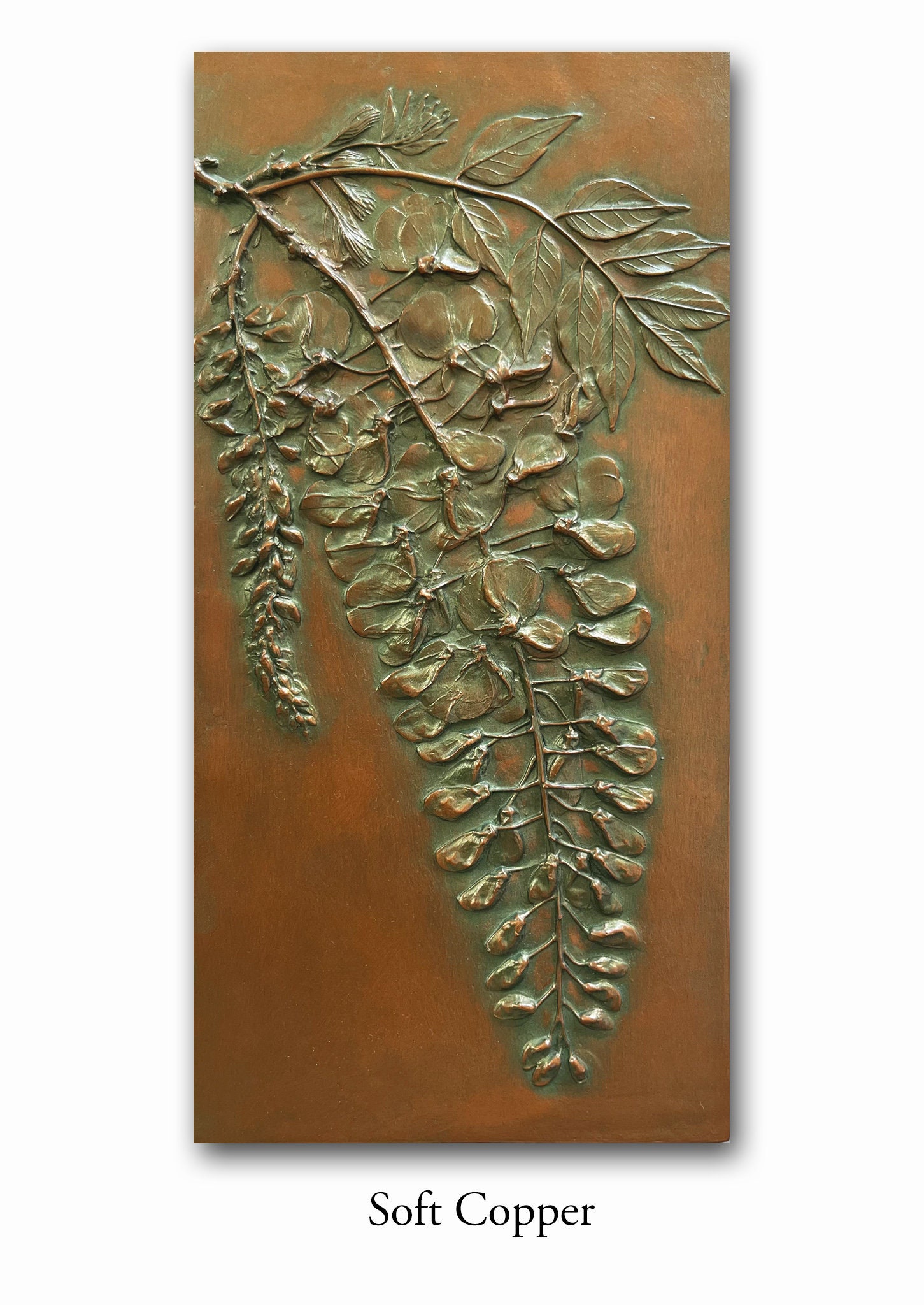 Although we manage to capture every detail of the elaborate Wisteria flower, the best part eludes us. The fragrance always takes me to my grandmother's upper porch where an old vine beckoned buzzing honey bees and competed with the scent of apple pie. While nature produces purple and white, Blindspot makes sixteen unique metallic patinas. Use the Wisteria with several of our other flower panels to evoke a bit of nostalgia in your home.