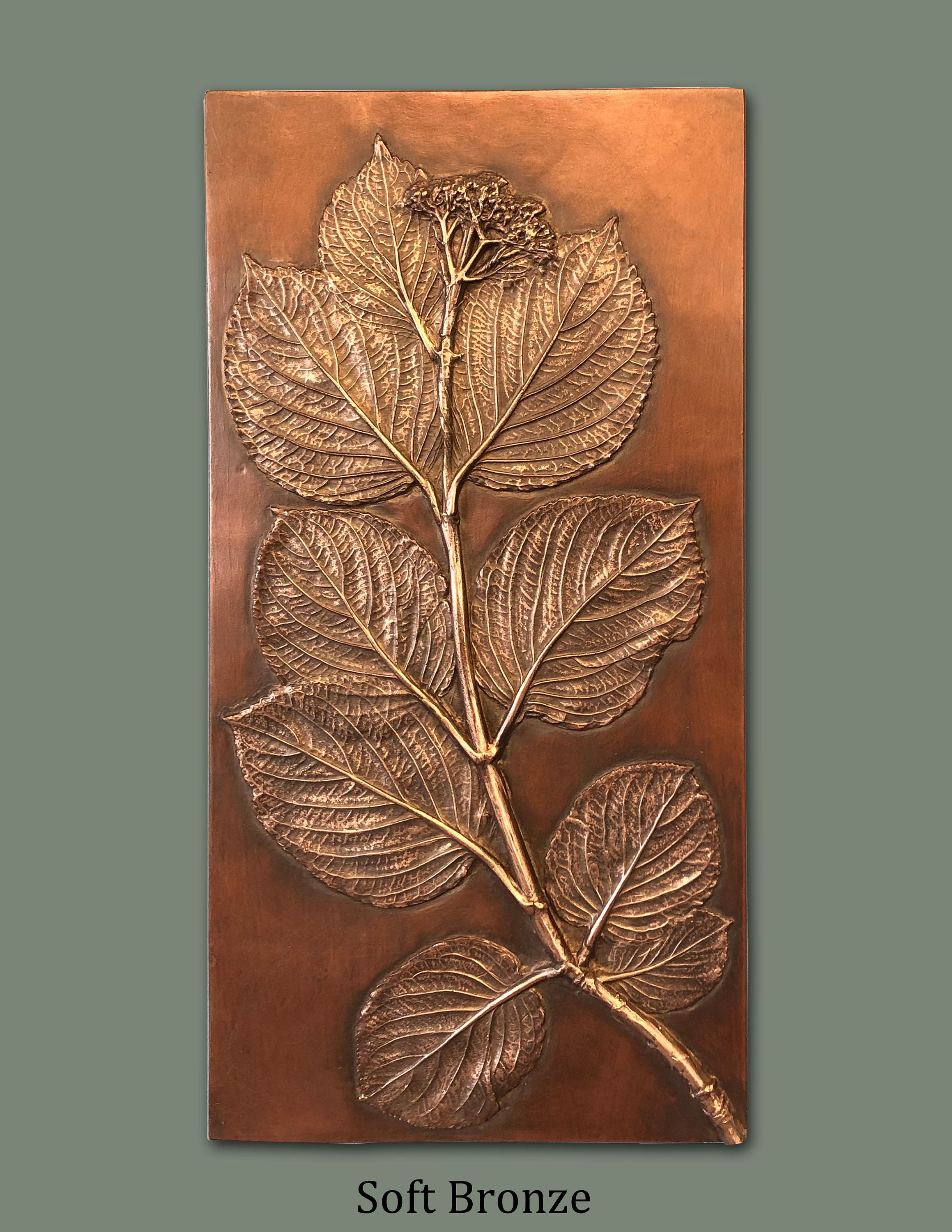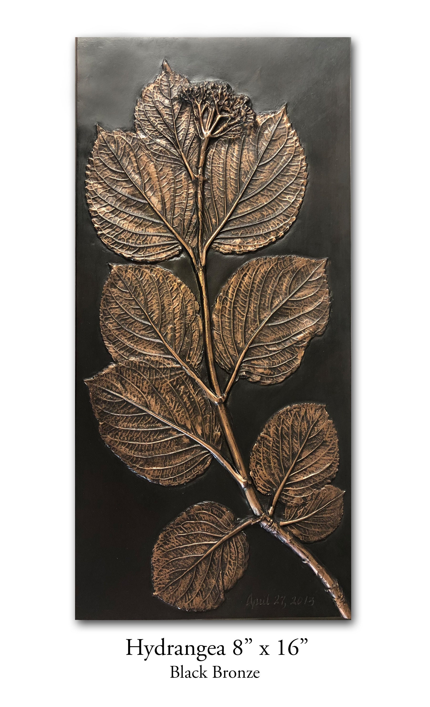 Hydrangea has showy flowers, but this decorative wall panel highlights the beautiful leaves and tiny buds. I have had this plant in a large pot for over 20 years, but just recently designed this 8x16 panel for my bedroom.
