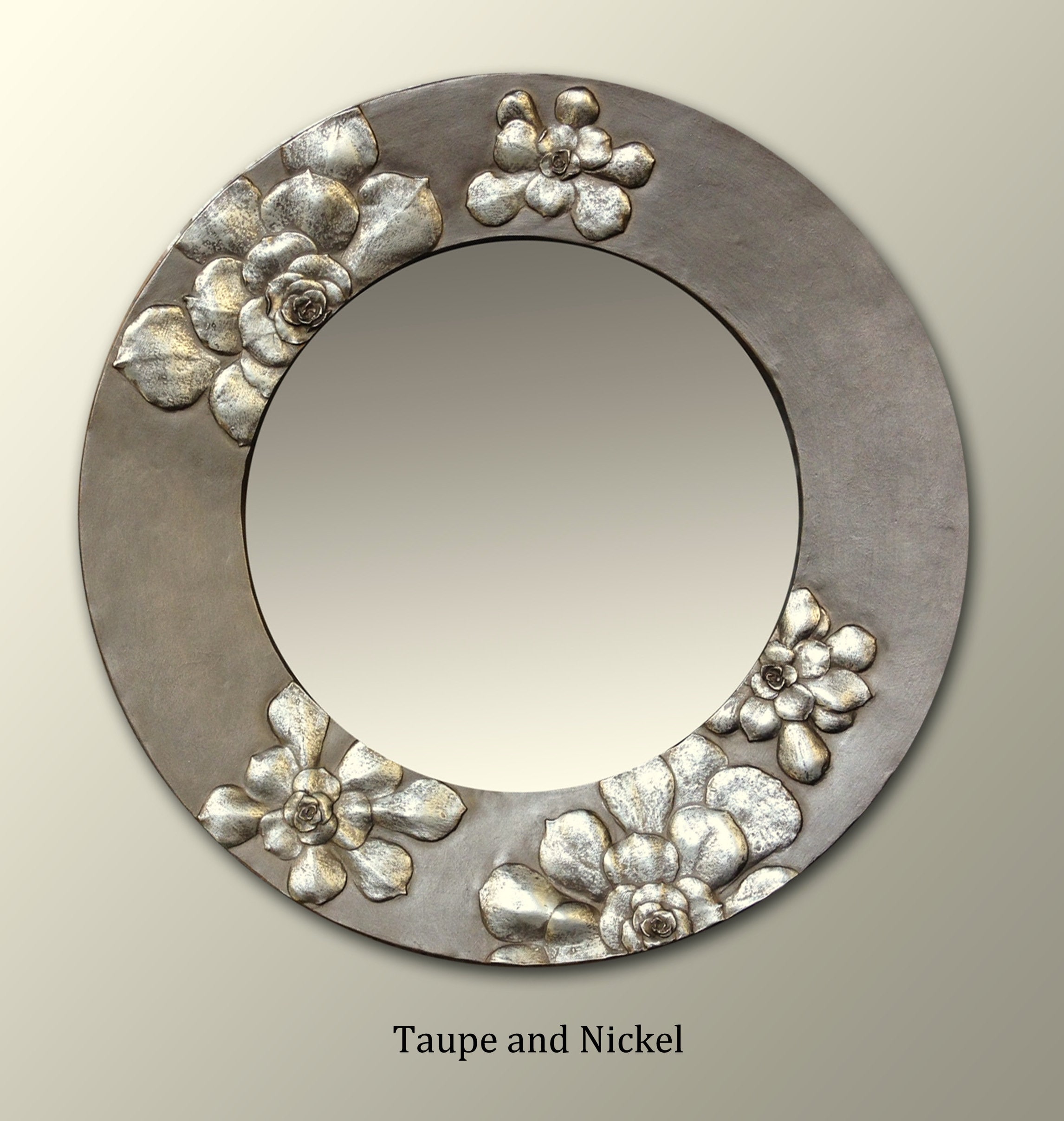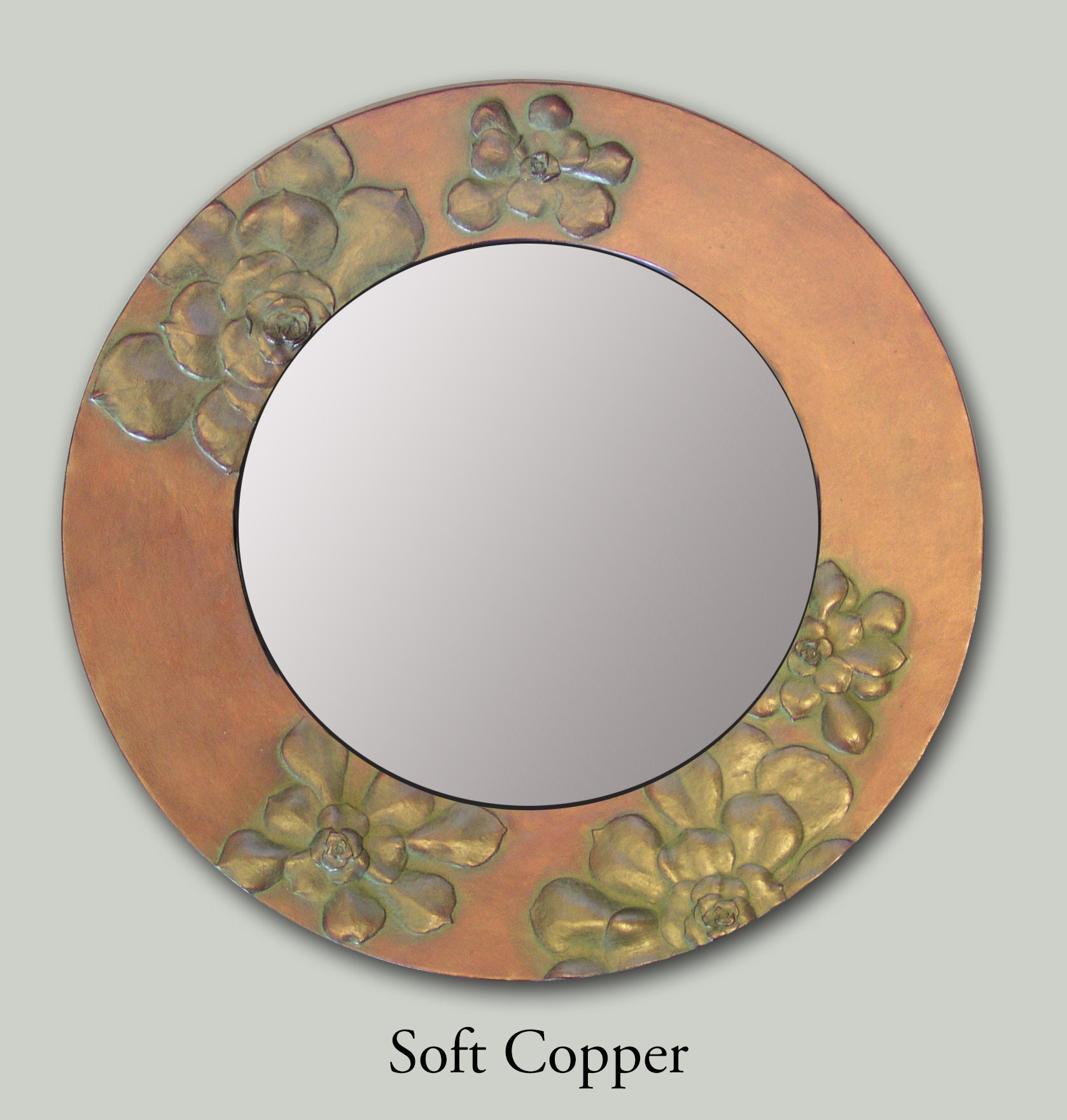 Succulent Mirror. Small 14" round accent mirror. Also available in custom rectangular sizes.